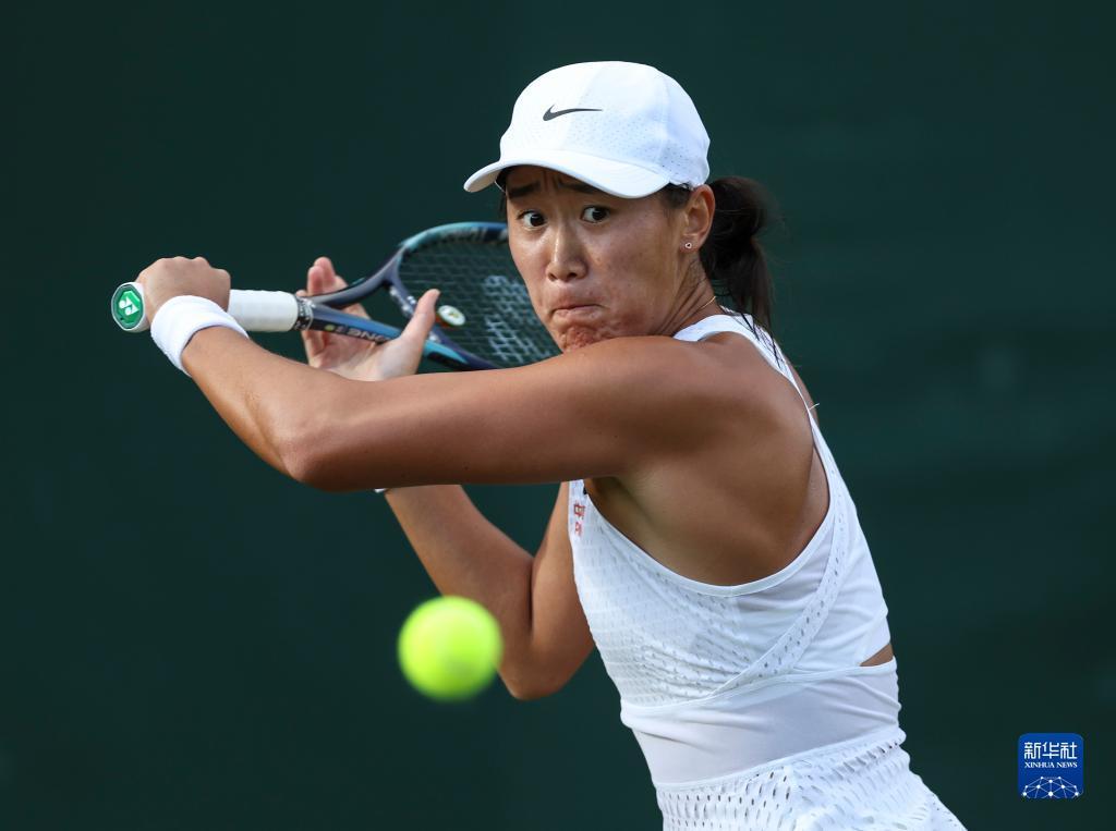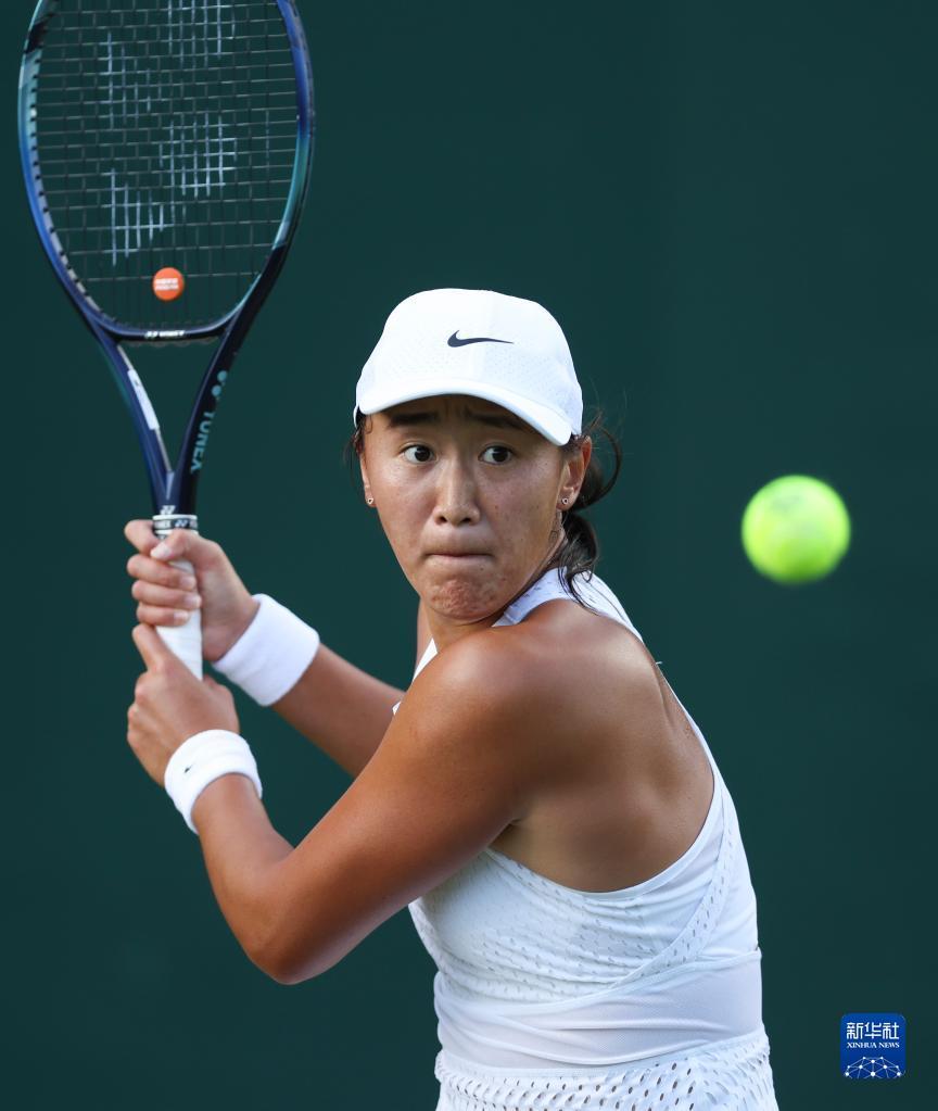 7月5日,王曦雨在比赛中回球。新华社记者 韩岩 摄
