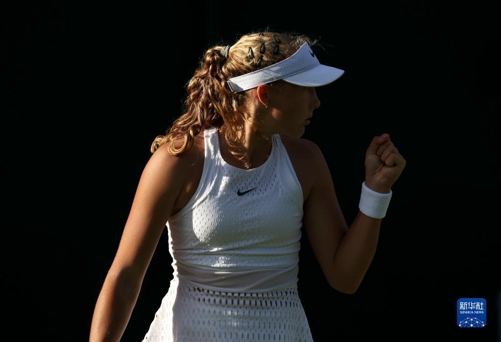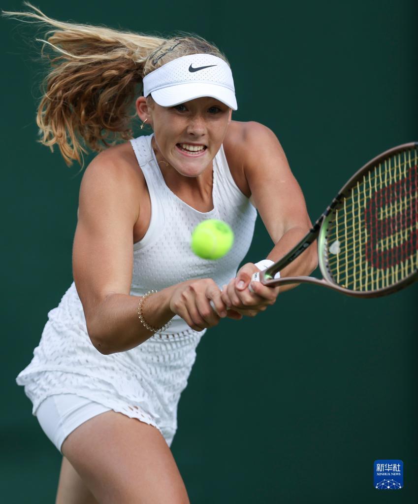 7月5日,安德烈耶娃在比赛中回球。新华社记者 韩岩 摄