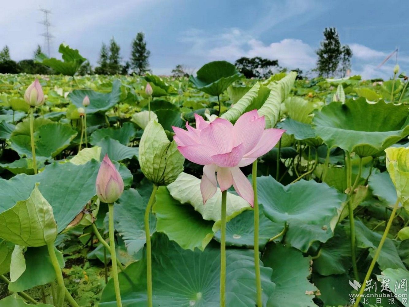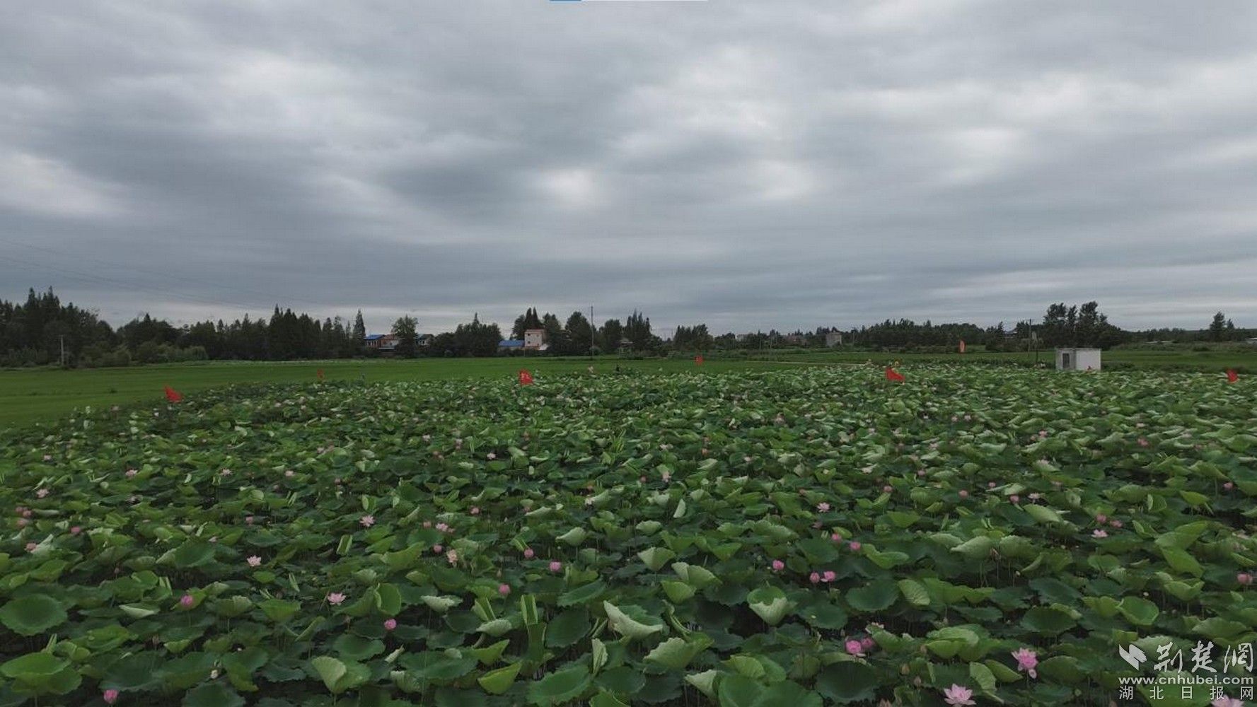 荆楚网(湖北日报网)讯(通讯员吴冲 曾程 左思曼)“出淤泥而不染,濯清涟而不妖。”7月4日上午,走进云梦县隔蒲潭镇灯塔村荷花基地,放眼望去,片片荷叶错落有致,朵朵荷花摇曳生姿。