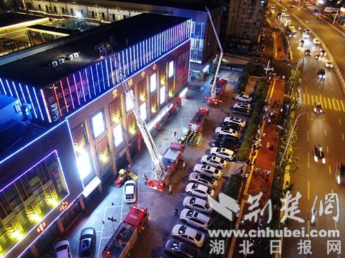 荆楚网(湖北日报网)讯(通讯员 杨丽、沈彦君)为进一步提高对辖区人员密集场所火灾扑救和夜间出警处置的实战水平,7月4日晚,荆门市东宝区消防救援大队深入辖区3326云街购物广场开展人员密集场所夜间灭火实战演练。