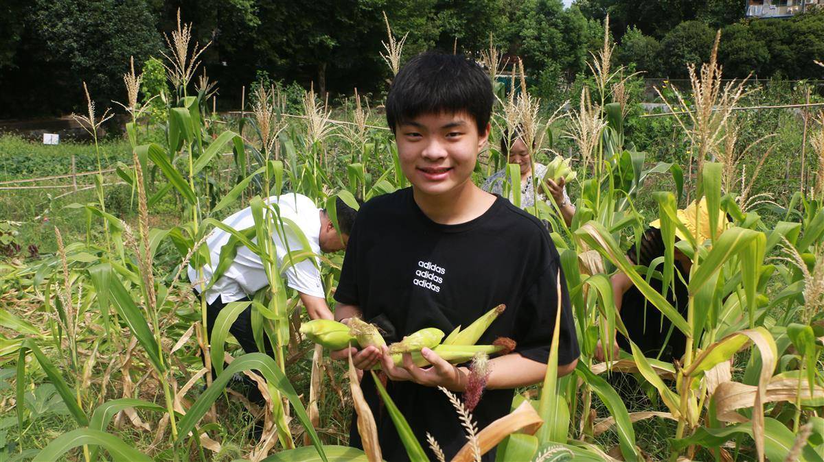 7月6日,华师第一附属中学初中部劳动实践基地百草园的玉米进入收割期。九(1)班应届毕业生回到校园,在学有所成的时节,同时收获自己的劳动果实。