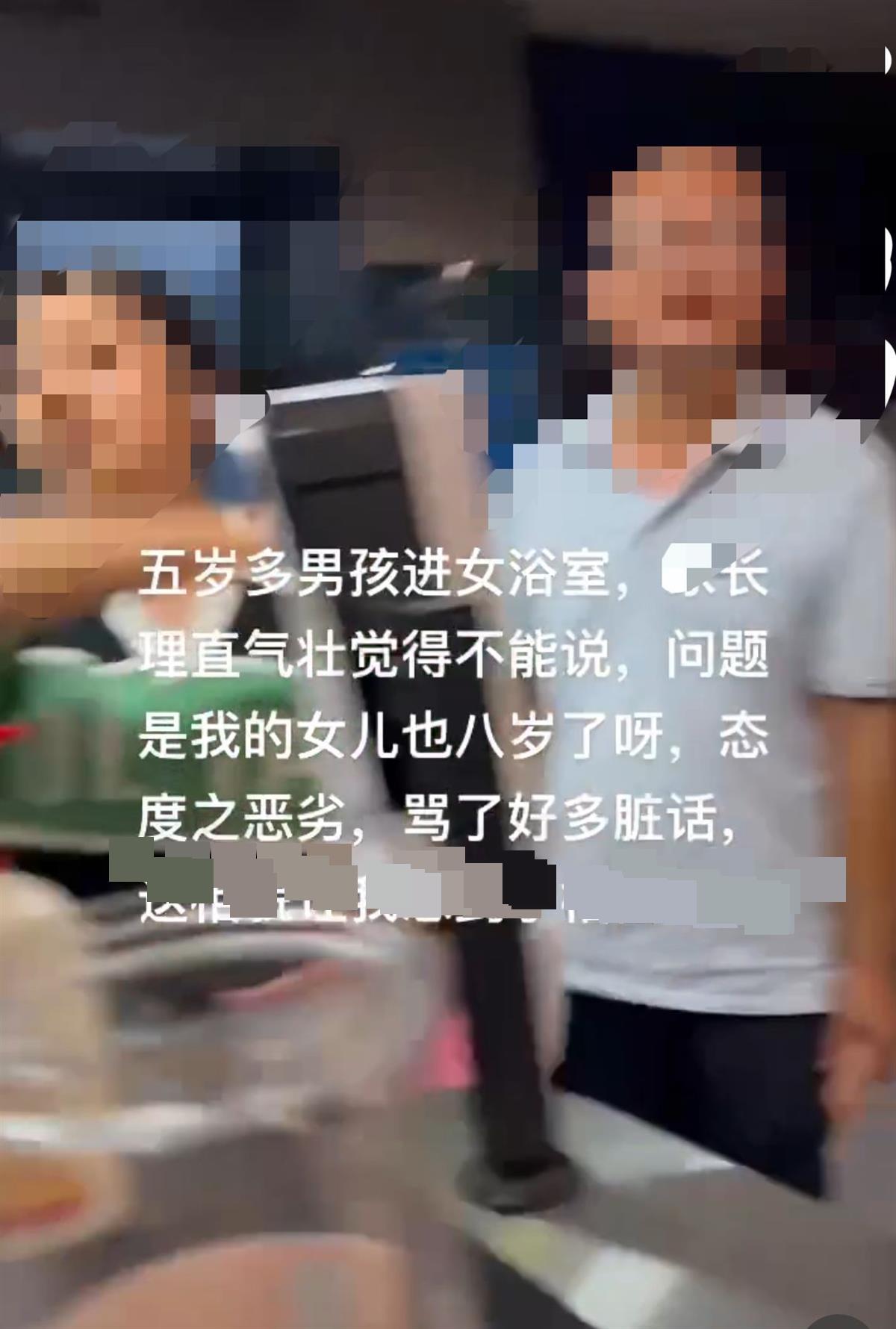 “看到他进来我就说了男孩不能进来,结果有一个家长说是她叫男孩进来拿鞋子,而且男孩才5岁,不懂什么。”王女士说,这名家长解释,她一人带两个小孩,希望其他家长能理解一下。但因为浴室有很多家长带着小女孩在洗澡,王女士觉得男孩家长的做法不对,便和她发生了争吵。没想到对方表示:“其他人都没说,就你说。”