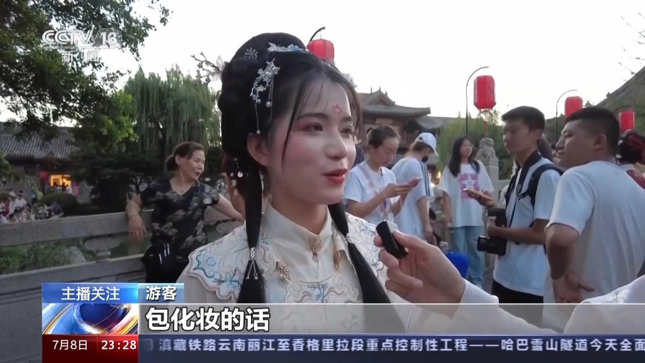 河南台记者:这一圈下来,不管是穿着时尚的仙侠服装,还是传统的汉文化服装,大家最认可的还是洛邑古城这样的一个场景。在这里,我也诚邀八方游客前来洛邑古城,进行沉浸式打卡体验。