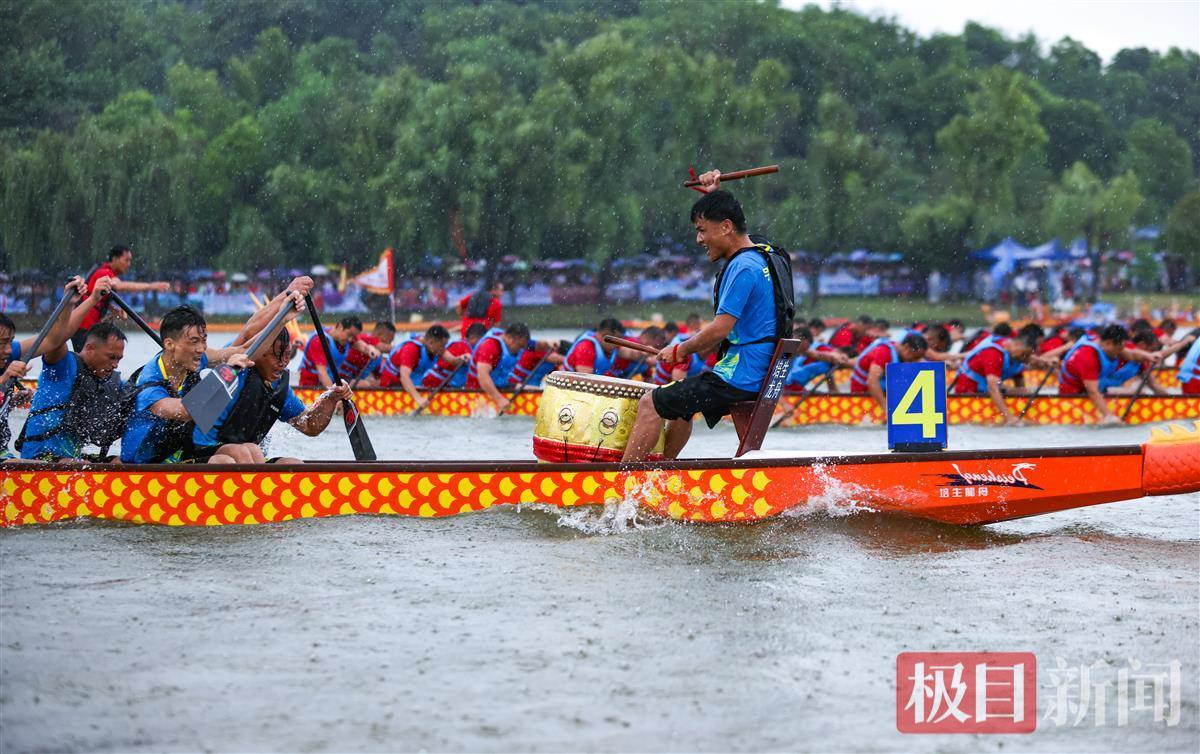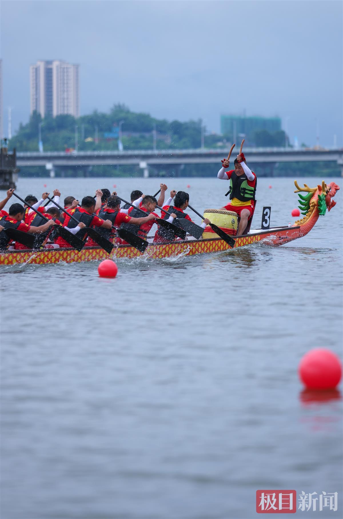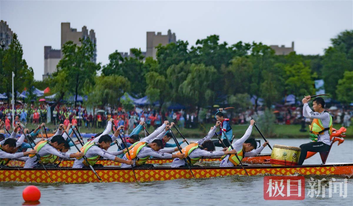 随着裁判员发令信号枪响,鼓槌落,船桨起,鼓声齐响,水花四溅,各队队员呼号铿锵,各色龙舟你追我赶,争先恐后地冲向终点线。“千帆竞渡、百舸争流”的画面精彩上演。