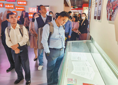 7月3日,澜沧江—湄公河合作媒体峰会采访团参观云南日报社史馆。 本报记者 白元琪摄 |