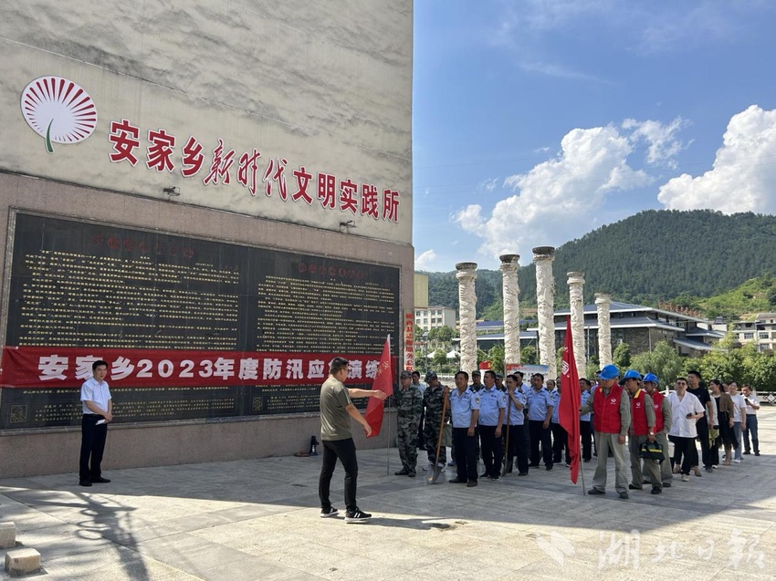湖北日报客户端讯(通讯员凌瞳)“报告指挥长,受近期降雨偏多影响,安家河水位已超过汛期限水位,存在发生险情的可能,下游5户群众生命财产受到威胁,请指示!”7月6日上午,在郧西县安家乡五龙河广场上,随着警报声响起,安家乡夏季防汛应急演练正式开始。