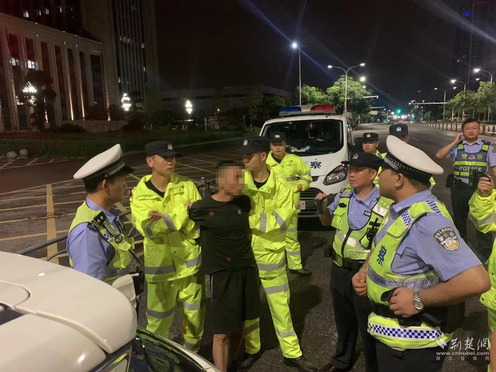 硚口交警查获飙车男子。通讯员供图