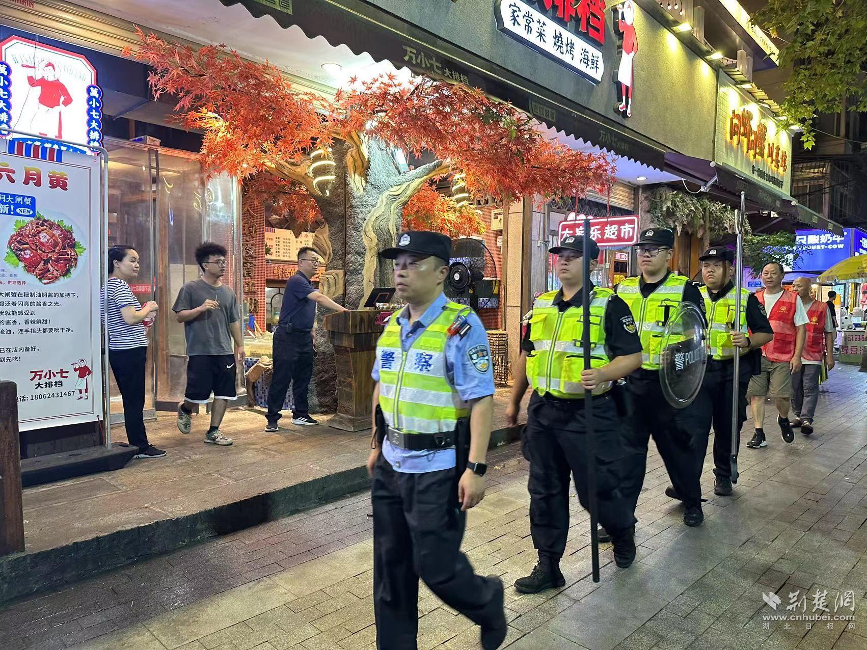 行动期间,武汉警方在全市设立1089个巡控单元,划设值守点、必到点、必巡线,采用武装巡逻、徒步巡逻、亮灯巡逻等形式,加大商圈夜市、江滩码头、特色街区及宵夜摊点、网红打卡点等重点部位巡逻力度。