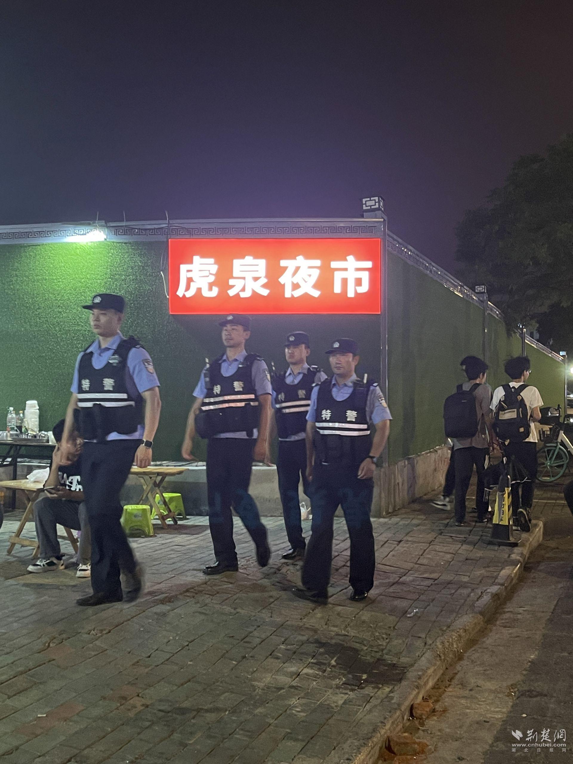 特警在虎泉夜市巡逻。通讯员供图