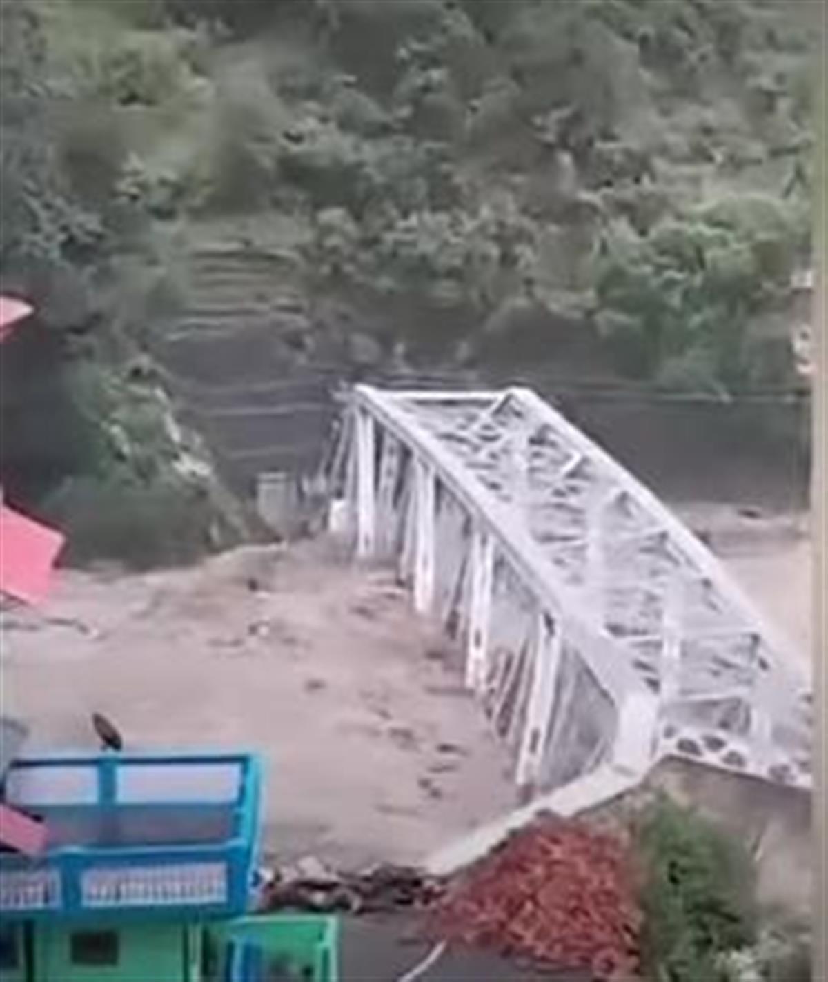 在北部喜马偕尔邦12个县当中,有多达10个月发布大雨红色警报。几乎所有河流都泛滥成灾,过去2天内最少有20宗重泥石流、17宗山洪暴发,并有30多栋房屋被毁。其中,门迪县拥有50年历史的帕奇瓦克特拉钢铁桥在暴雨中被冲垮,随着湍急河流漂走,10秒之内便淹没消失在滔滔洪流中,惊险画面在网上曝光。
