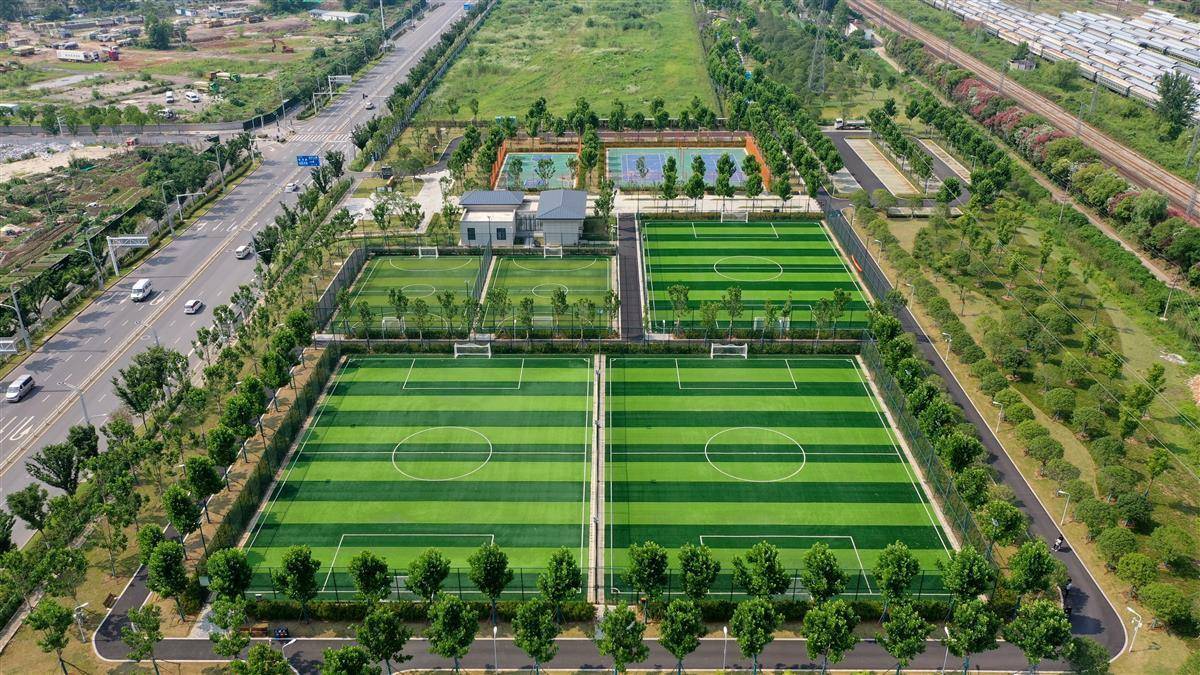 在毛坦公园南边区域,5大足球场依次排列;公园北面,有两个网球场和篮球场;公园中段,设置有山地车赛道……每个建设设施附近皆设有机动车和非机动车停车位,让市民在家门口就能快乐健身。