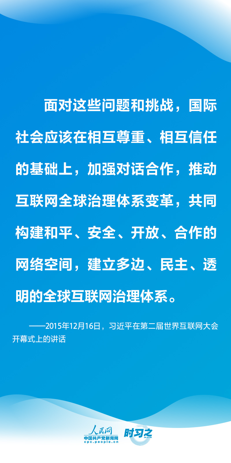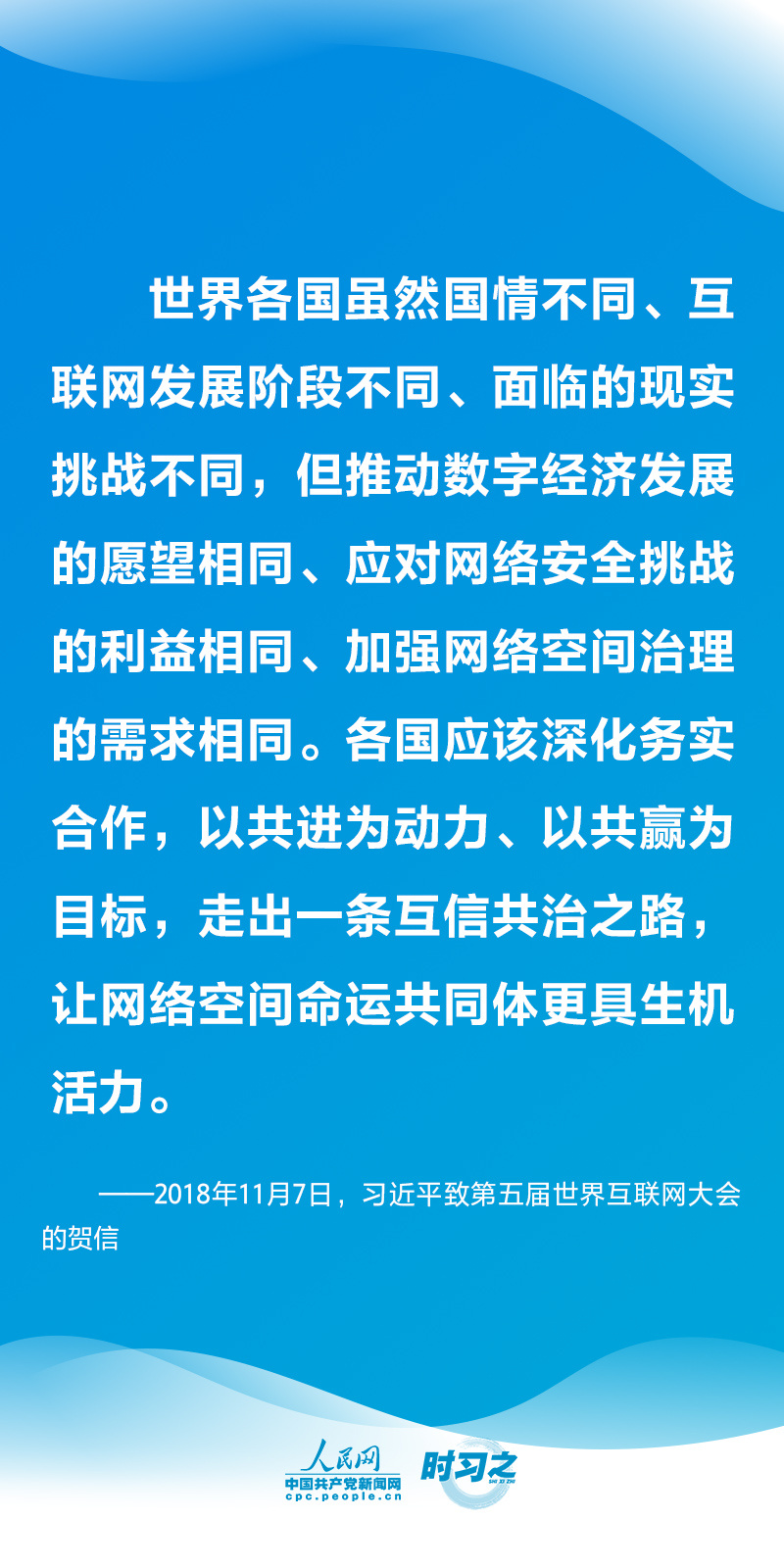 “推进全球互联网治理体系变革是大势所趋、人心所向。”近年来,从举办世界互联网大会,到发布《网络空间国际合作战略》、发起《全球数据安全倡议》,中国顺应信息化时代的发展潮流,主动参与网络空间国际治理进程。国家主席习近平多次在不同场合阐释互联网发展治理的重大理论和实践问题,为推动全球互联网发展治理分享中国经验、贡献中国智慧。