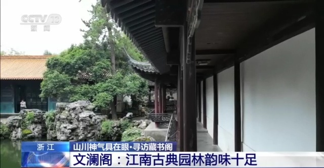 总台记者 朱睿祺:在湿润多雨的江南,防潮是藏书楼面临的一大挑战。特别是文澜阁就建造在西湖旁边、孤山脚下,丰沛的水汽也加剧了整个环境的潮湿度。为了做好书籍的防潮,古人除了定期晒书以外,在整个藏书楼的设计方面也花了不少心思。在明堂的前后两侧,包括二楼夹层,都设计有非常多的窗户;抬头向上看,还能够在正中间看到一个“天井”,这在“内廷四阁”中是看不到的,这些措施都有利于整个建筑的采光和通风。 和北方藏书阁相比,文澜阁的规模并不算大,但它特有的江南古典园林韵味同样让人印象深刻。