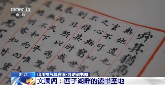 总台记者 朱睿祺:1912年,文澜阁版《四库全书》移交浙江图书馆收藏,从此阁与书分离。虽然现在文澜阁已经不再储藏《四库全书》,但作为中国古代藏书文化的历史见证,文澜阁在保存典籍、传播文化的同时,也见证着中华民族绵延不绝的文化品格。
