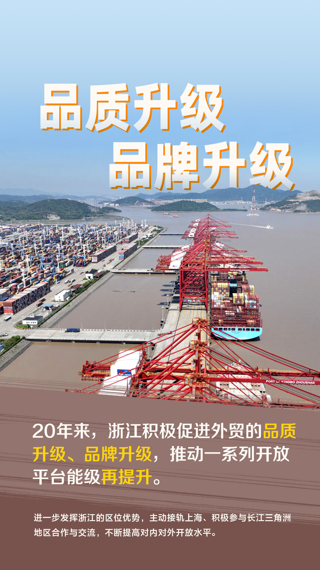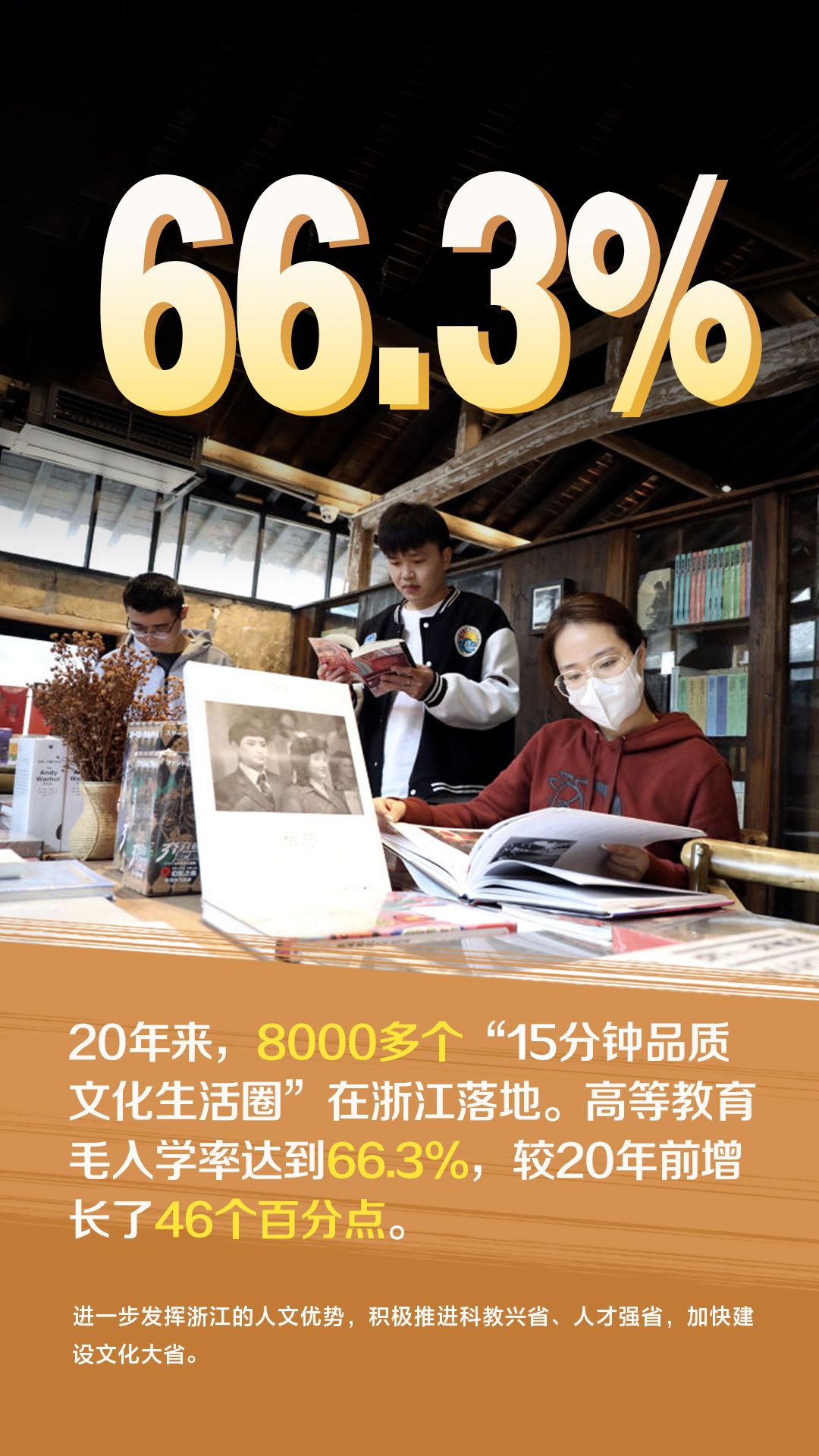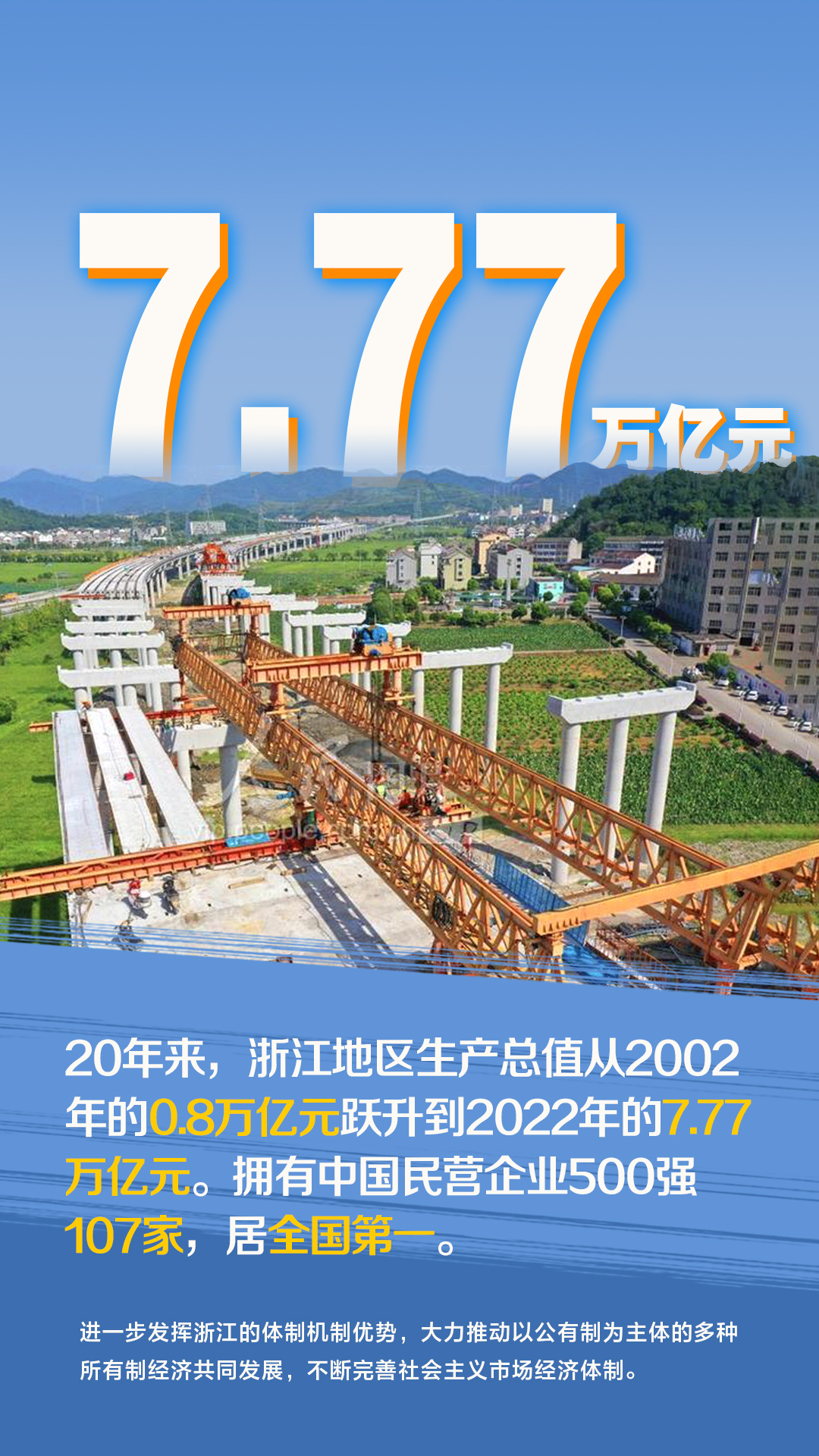干在实处、走在前列、勇立潮头 ,今年是“八八战略”实施20周年。2003年7月,时任浙江省委书记习近平提出,要进一步发挥八个方面的优势、推进八个方面的举措,即“八八战略”,指引浙江走出改革创新开放图强之路。 20年来,浙江一张蓝图绘到底,经济社会发展取得新的历史性成就,八个方面的数据带您重温之江大地的精彩蝶变。