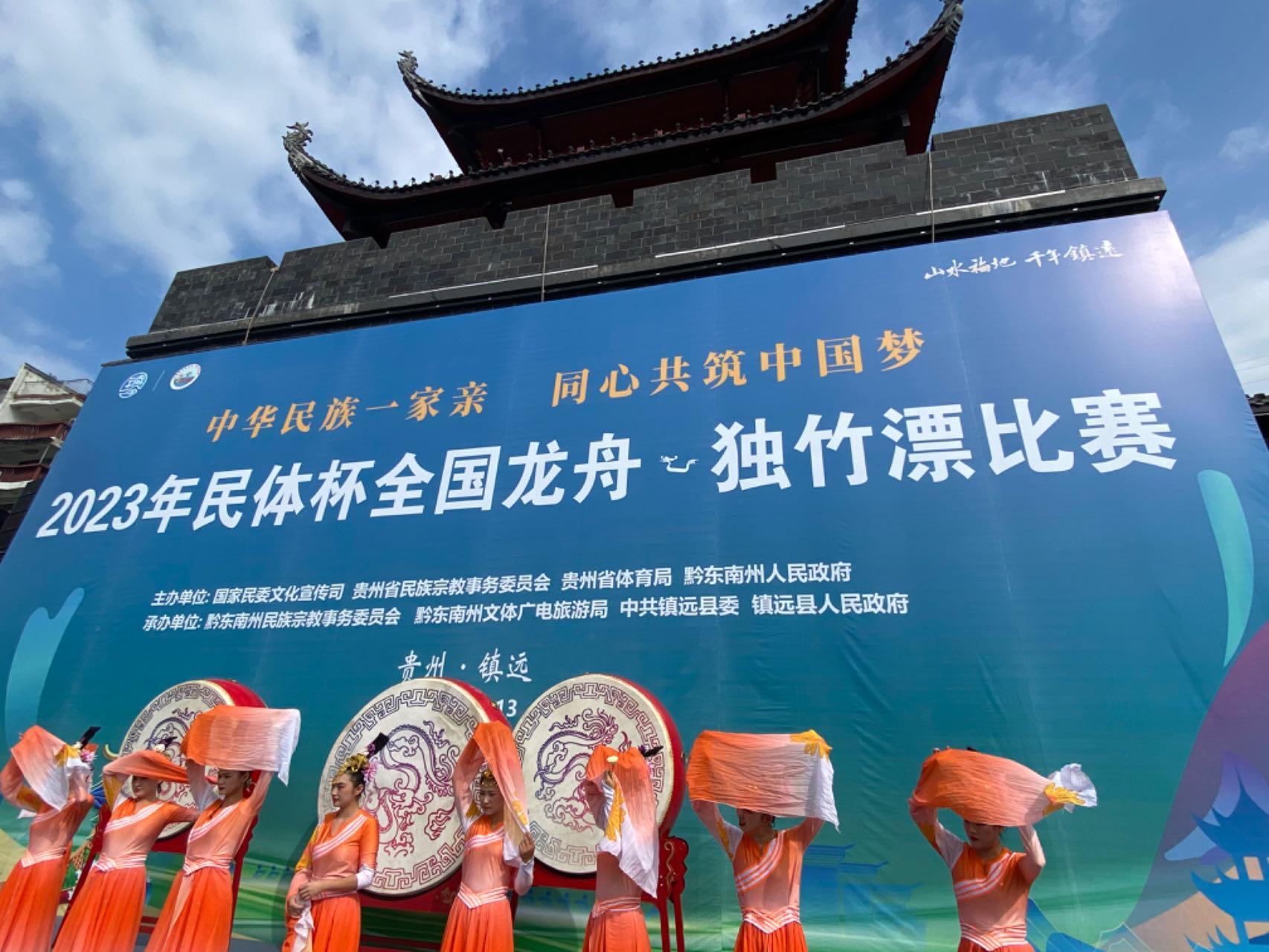 人民网黔东南7月13日电 (彭静)12日上午,2023年民体杯全国龙舟、独竹漂比赛在贵州省黔东南苗族侗族自治州镇远县拉开帷幕。