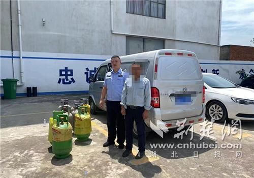 当日9时许,石牌派出所民警接到辖区群众举报,有人在村里开着面包车“卖气”。接线索后,民警当即到赶到村里核查,此时一辆面包车停在村民家门口,驾驶员正搬运液化气瓶,见此情况,民警立即上前进行检查。经查,面包车系刘某所有,正在给村民配送液化气,面包车上装载着8个液化气瓶。