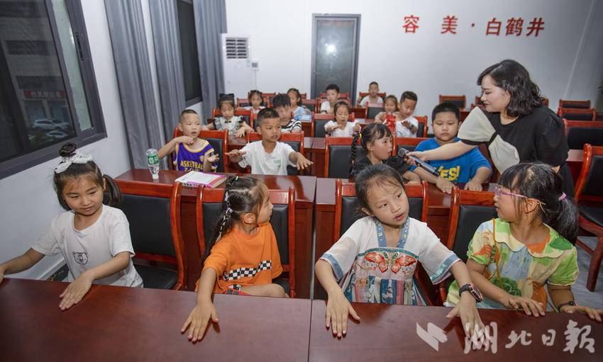 湖北日报客户端讯(通讯员覃进之)“有一个古老的国家叫中国,我们是中国人,要说中国话”,“出东门,过大桥,大桥底下一树枣,手拿竹竿去打枣,青的多,红的少,一个枣、两个枣、三个枣……”7月14日,鹤峰县白鹤井社区职工子女爱心托管班开班后,教师便引导孩子们进行阅读、锻炼口才。