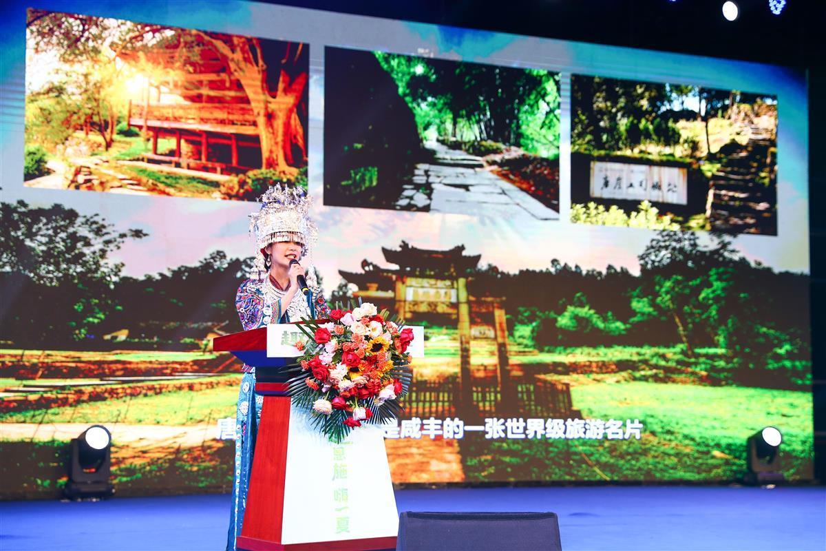 活动现场,咸丰县文旅推介代表详细介绍咸丰丰富的文旅资源,唐崖河黄金洞,上下七层,如空中楼阁;黄金洞漂流,被誉为“中国地心第一漂”;麻柳溪,宁静的羌族村寨,享有中国中部最后一个香格里拉的美誉。国家4A级旅游景区坪坝营、世界文化遗产唐崖土司城址等景点和咸丰旅游精品线路悉数亮相。