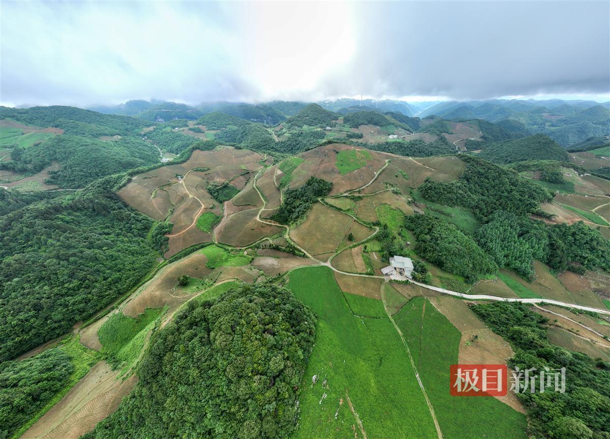 云雾缭绕之下,海拔1900米的恩施市板桥镇新田村,平地里、山坡上的党参、川牛膝等中药材长势良好,郁郁葱葱。它们镶嵌在山间林地,共同勾勒出一幅美丽的图画。