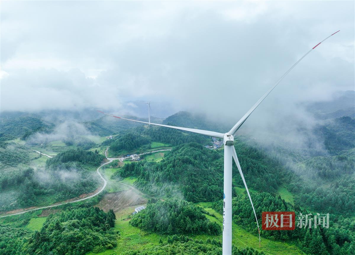 云端上,山里面,恩施市板桥镇大山顶村,一场夏雨而过,趁着风势,一座座风力发电机迎风转动。云端之下,漫山遍野的党参经雨水滋润,更显清新鲜嫩。