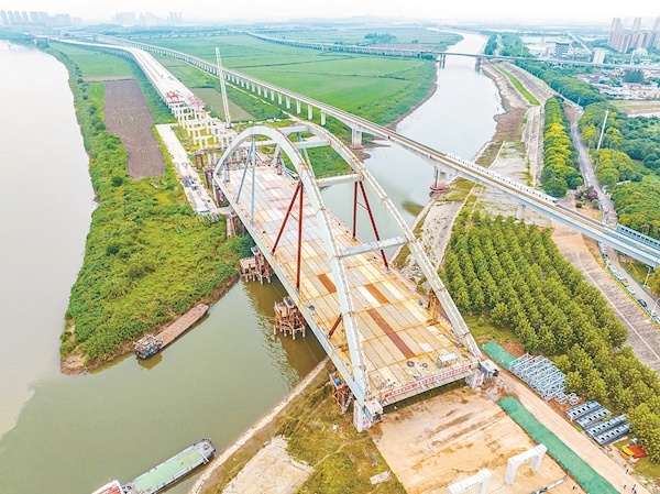 跨通顺河主桥顺利顶推到位 摄影:楚天都市报极目新闻记者宋枕涛