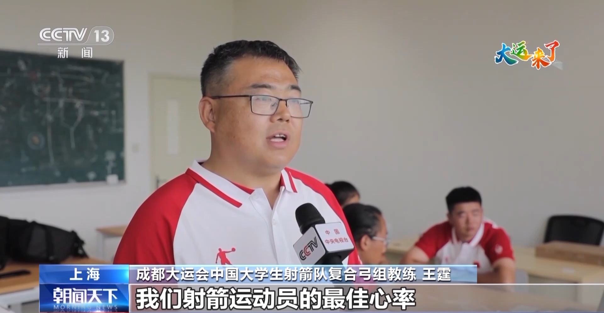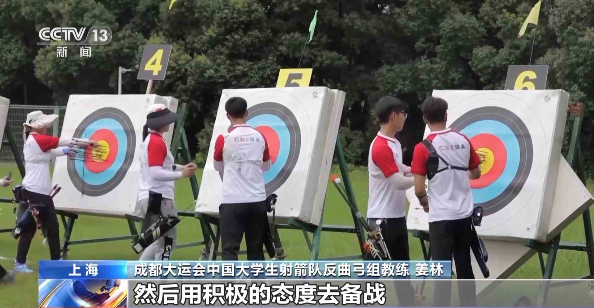 成都大运会中国大学生射箭队副领队 张波:我们在训练的时间上面是安排得非常紧凑的,一个月的时间里面,他们几乎是天天都要进行训练的。那么有的是体能训练、理论训练,还有各种各样的这种我们技术性的训练、战术性的训练。