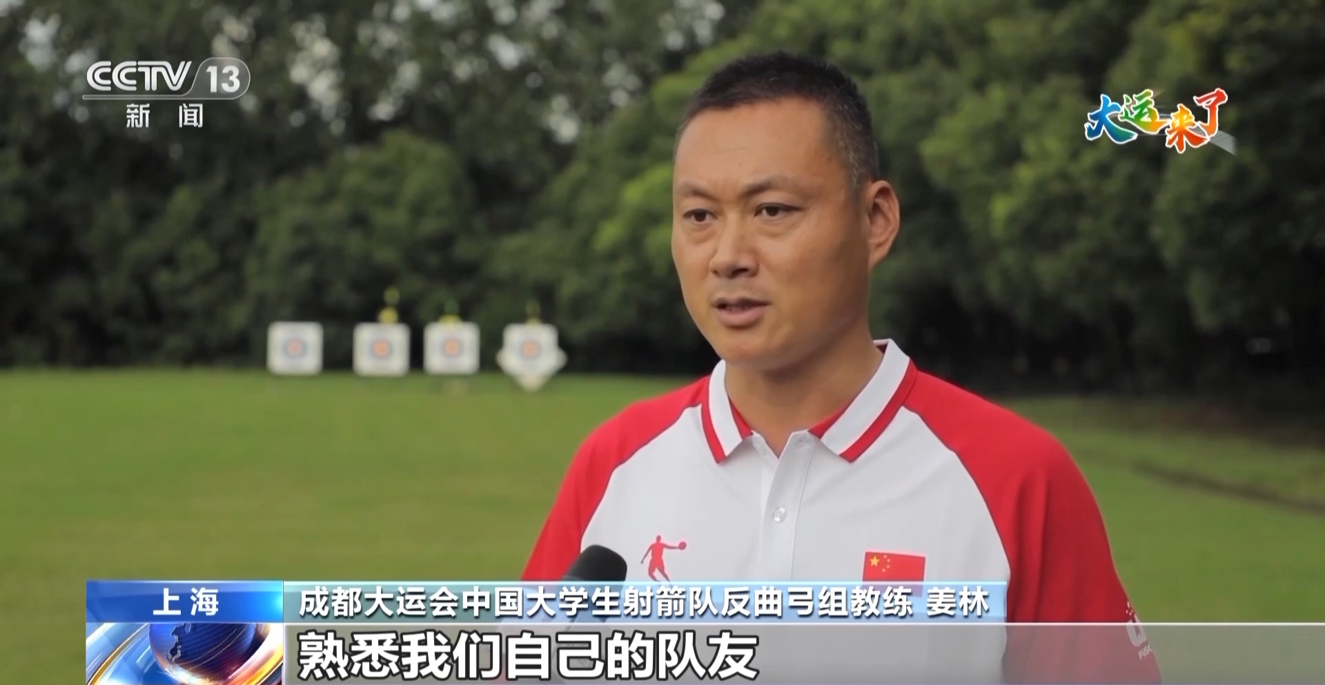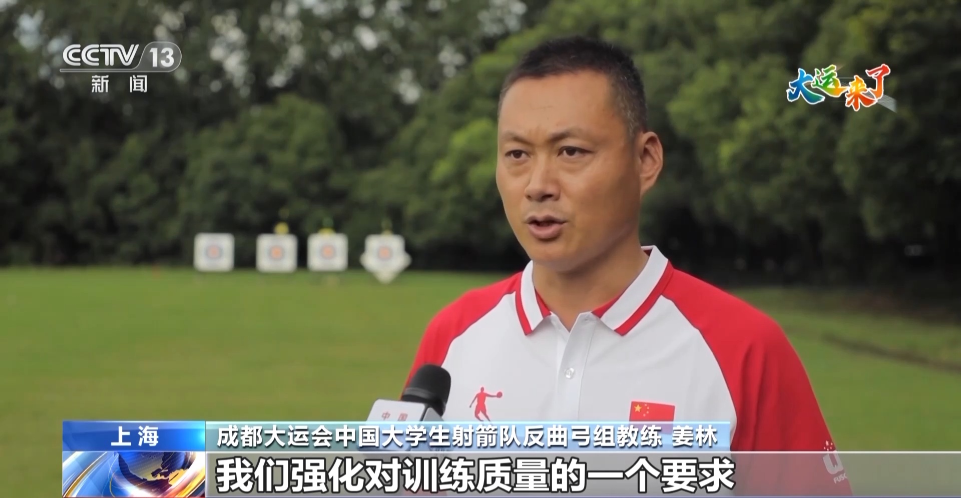 成都大运会中国大学生射箭队反曲弓组教练 姜林:我们强化对训练质量的一个要求,因为我们面对的对手是很强的,困难想在前面,然后用积极的态度去备战。