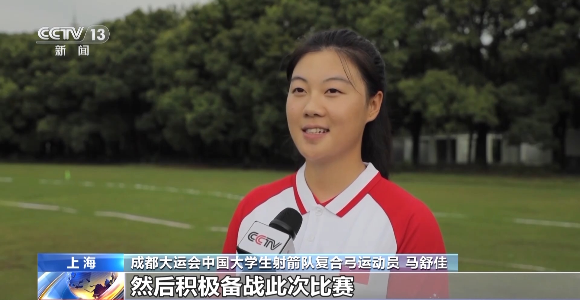 成都大运会中国大学生射箭队复合弓运动员 马舒佳:全身心投入训练当中,然后积极备战此次比赛,在这里体能储备和技术储备都储备得非常好,还是蛮有信心的。