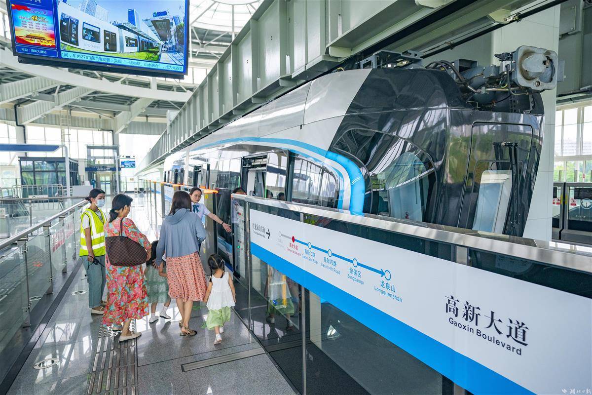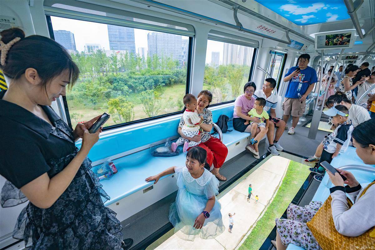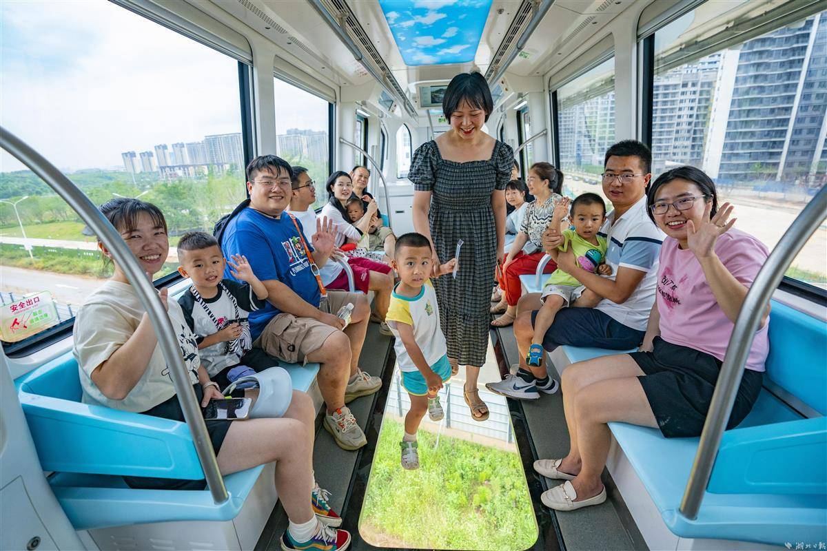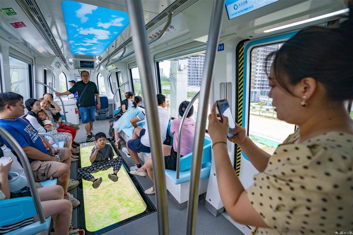 7月16日,正在试运行的光谷空轨迎来首批体验市民。当日,来自100个体验家庭的市民走进科幻的空轨车厢,抢先打卡体验不一样的黑科技。“空中漫步、流动观景台,宛如低空飞行,感受科技未来……”大家在空中轻松看遍光谷生态大走廊上的所有景点,在山水湖泊之间,近距离感受科技与人文的交融。