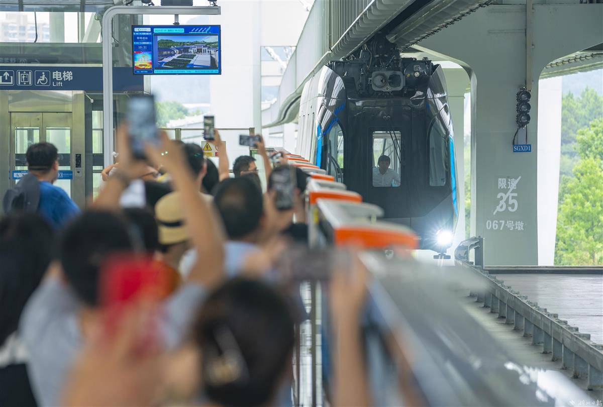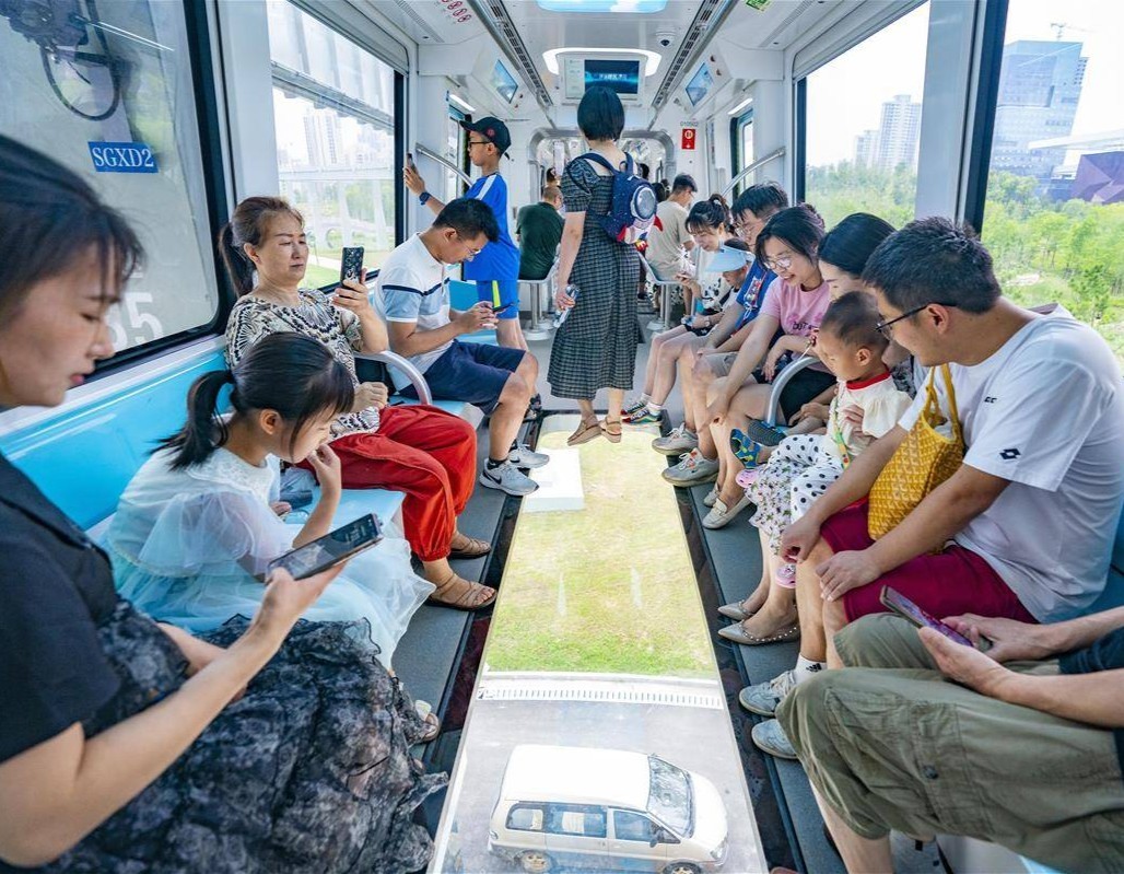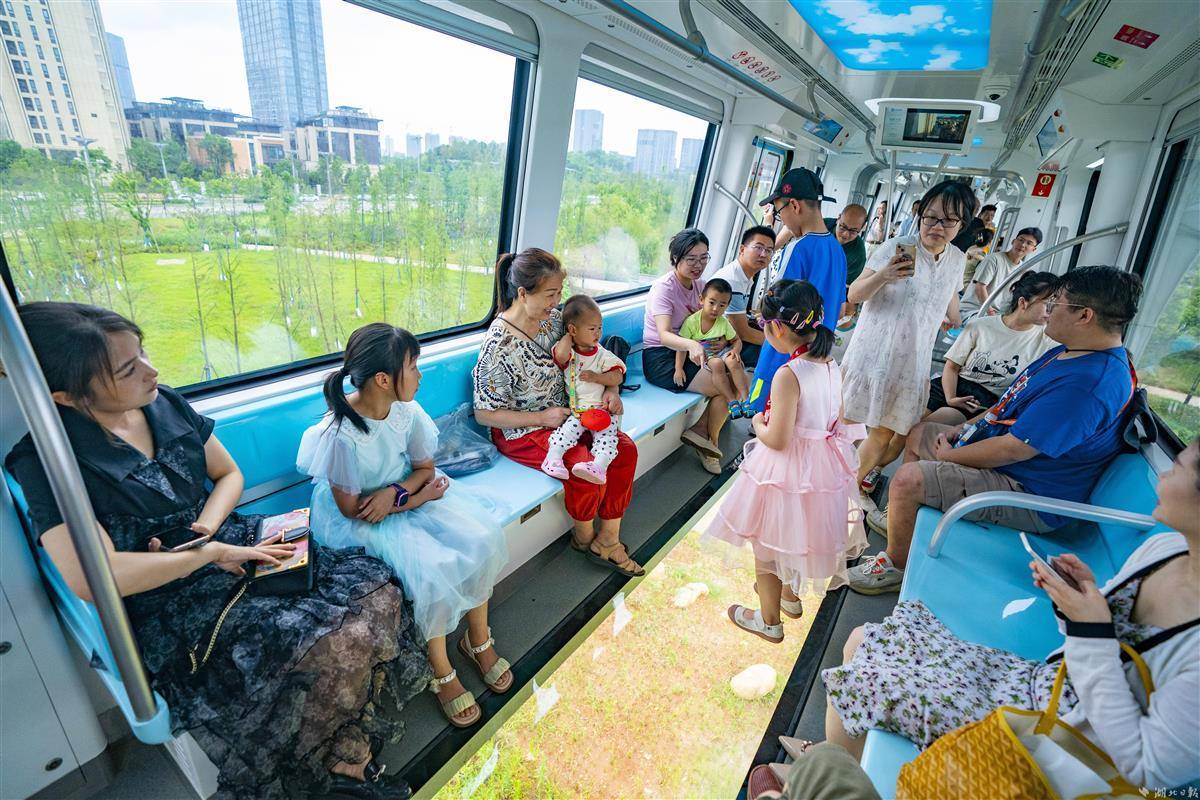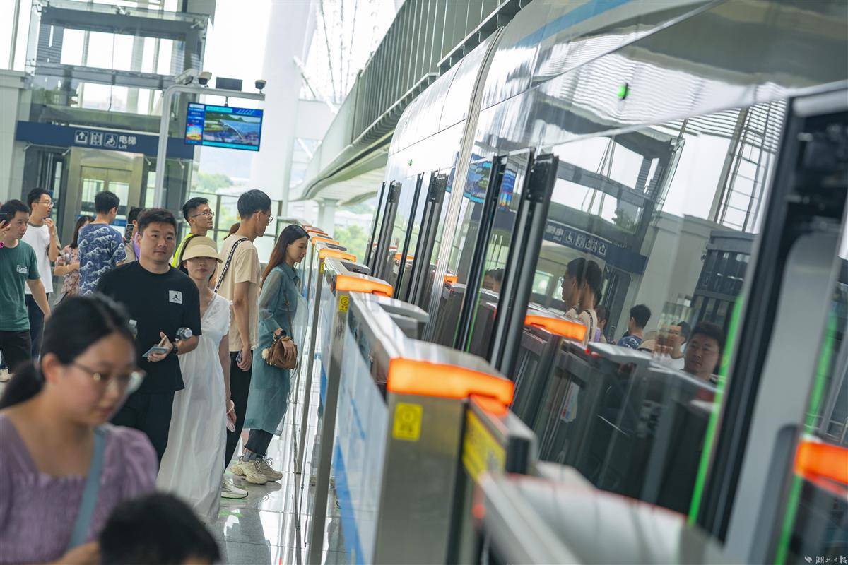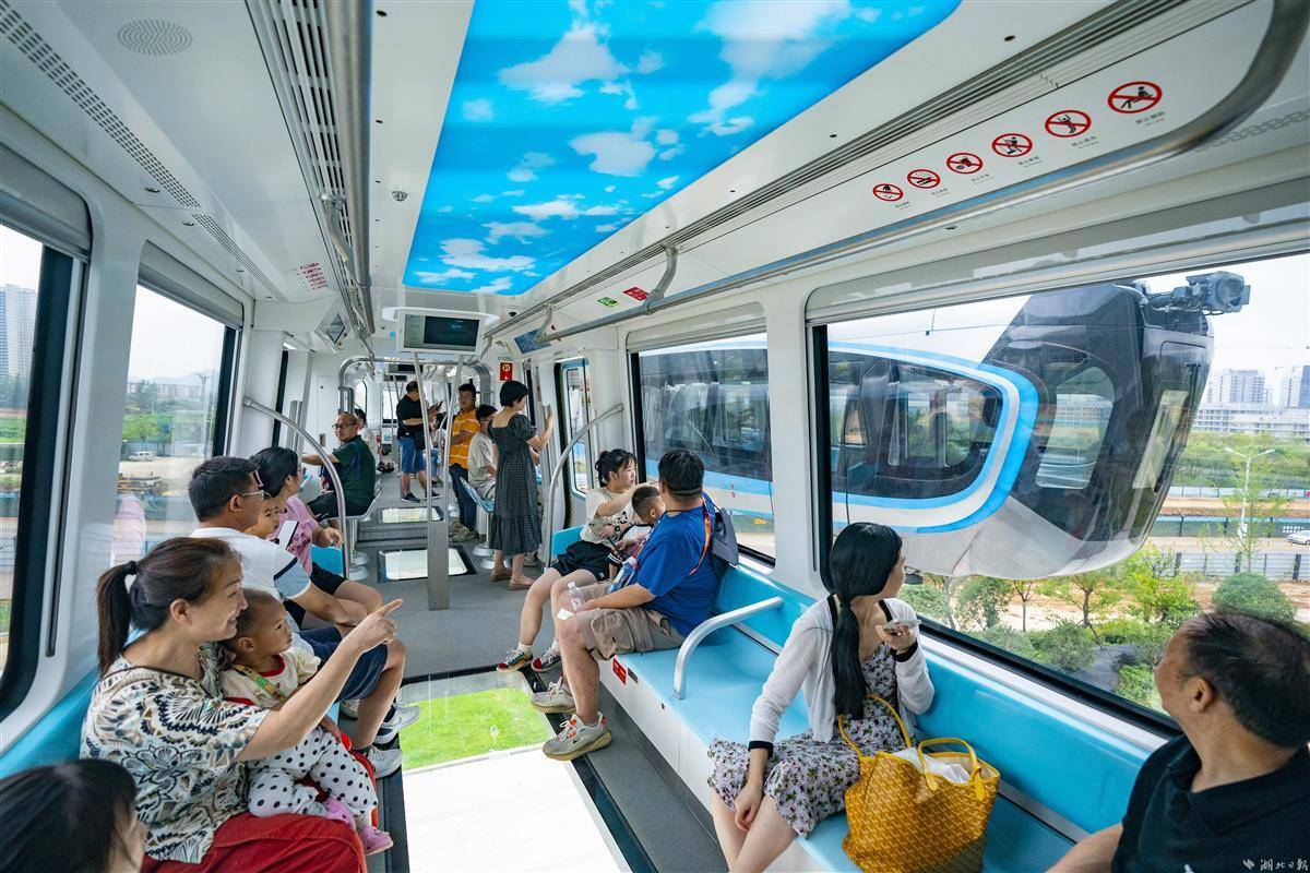 7月16日,正在试运行的光谷空轨迎来首批体验市民。当日,来自100个体验家庭的市民走进科幻的空轨车厢,抢先打卡体验不一样的黑科技。“空中漫步、流动观景台,宛如低空飞行,感受科技未来……”大家在空中轻松看遍光谷生态大走廊上的所有景点,在山水湖泊之间,近距离感受科技与人文的交融。