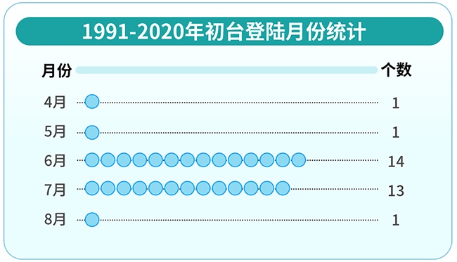 1991-2020年初台登陆月份统计 丁茜制图