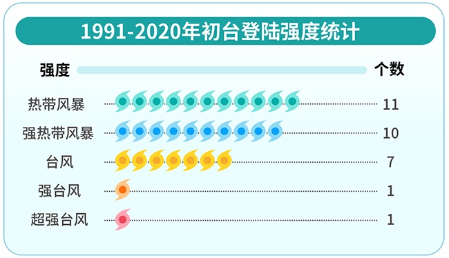 1991-2020年初台登陆强度统计 丁茜制图