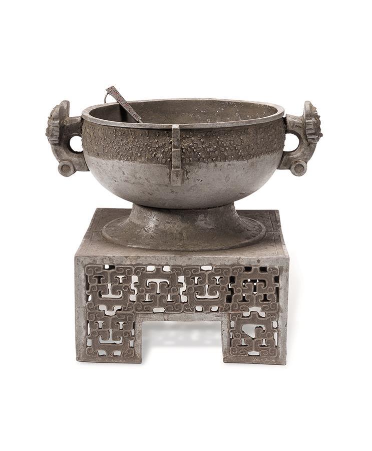 古代煮饭用的炊食器,设计特点是“三足鼎立”且为中空,以便食物加热。一般器物颈部装饰有粗线饰饕餮纹,腹裆部饰双线人字纹。具体样式可参见湖北省博物馆馆藏文物铜鬲。