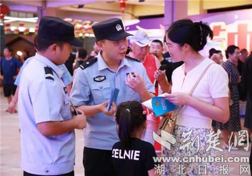 荆楚网(湖北日报网)讯(通讯员 刘俊杰)“答对问题就可以获得警察小熊哦……”7月16日晚,钟祥市公安局组织反诈、禁毒、交警等警种,携带近期网络上火爆的“警察小熊”,来到2023钟祥仲夏季龙虾果啤音乐节现场开展反电诈、禁毒、交通安全等普法宣传活动。