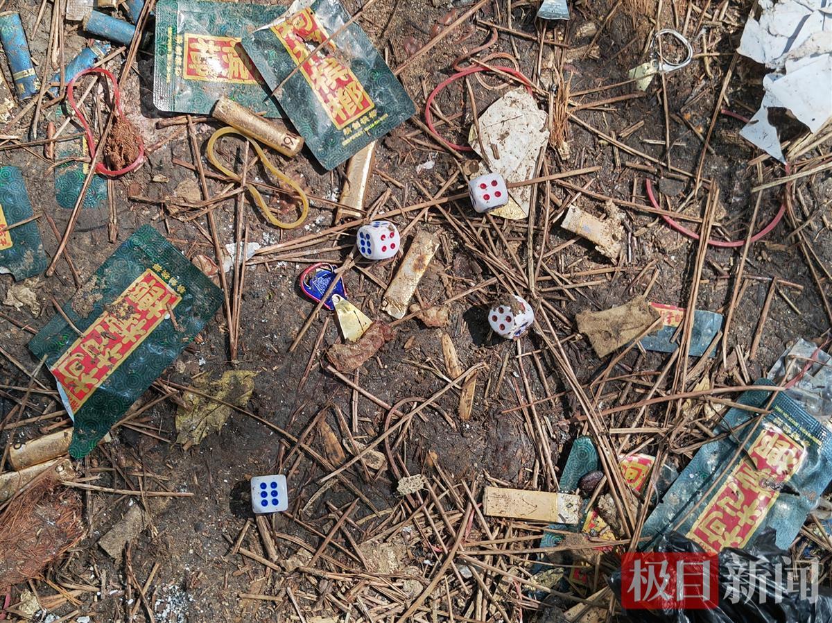获取线索后,民警立即赶往被举报地点,发现所有涉赌人员已逃离,现场遗留大量烟头、骰子、槟榔、空饮料瓶等物品,赌博痕迹明显。