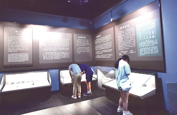 记者在该馆二楼简牍展厅看到,10支落下古人笔迹的《算数书》竹简,为参观者出了5道数学题,让后人沉浸于2000多年前的中国智慧,惊叹于蕴含在文化根脉中的“何以中国”。