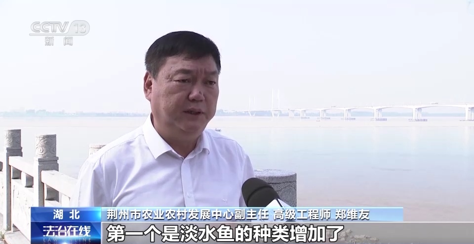 荆州市农业农村发展中心副主任 高级工程师 郑维友:第一个是淡水鱼的种类增加了,特别是在长江监利江段就监测到40种,比在禁捕以前增加了4种,它的数量增加了。在长江监利段,四大家鱼卵苗资源量在2022年监测到78个亿接近79个亿。