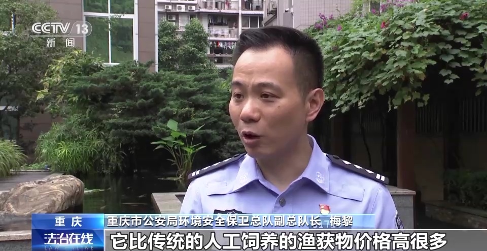 重庆市公安局环境安全保卫总队副总队长 梅黎:民警通过暗访,实地到那个餐馆去暗访的时候,餐馆老板自称是野生鱼,而且价目表我们也观察了,它比传统的人工饲养的渔获物价格高很多,我们初步判断它应该是野生鱼类。然后我们观察鱼的活性很强,完全不像是人工饲养的鱼类状态。