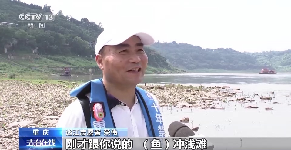 巡江志愿者 荣伟:变化很大的,鱼确实多了。刚才跟你说的(鱼)冲浅滩,看着真是可爱啊。有时候跟家人一起在江边散步,空气又好鱼又多,生态环境也好了。