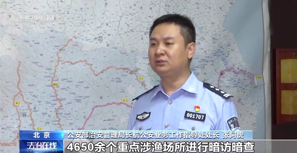 公安部治安管理局长航公安业务工作指导处处长 张阿虎:在鱼鲜消费旺盛的“五一”“中秋”“国庆”等重点时段,公安部先后10轮次派出117个工作组,深入沿江460余个区县、4650余个重点涉渔场所进行暗访暗查,对发现的1600条可疑问题线索,第一时间部署,逐一落实核查措施。