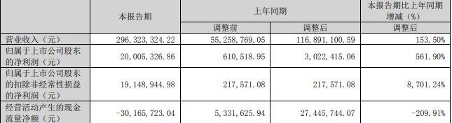据陇神戎发2023年一季度报告,报告期内,公司实现营业收入2.96亿元,同比增长153.50%;归属于上市公司股东的净利润2000.53万元,同比增长561.90%;归属于上市公司股东的扣除非经常性损益的净利润1914.89万元,同比增长8701.24%;经营活动产生的现金流量净额-3016.57万元,同比下降209.91%。