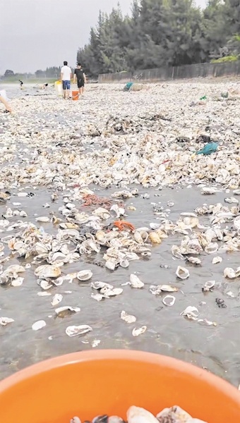 广东茂名、汕头等地亦有市民在社交平台分享,自己在沙滩上捡到的海鲜。广东汕头潮南区的姚先生说,17日台风过后,汕南区加路仔海滩上就出现了大量生蚝、青口贝,被风浪打碎的生蚝壳子一堆一堆地堆在地上。