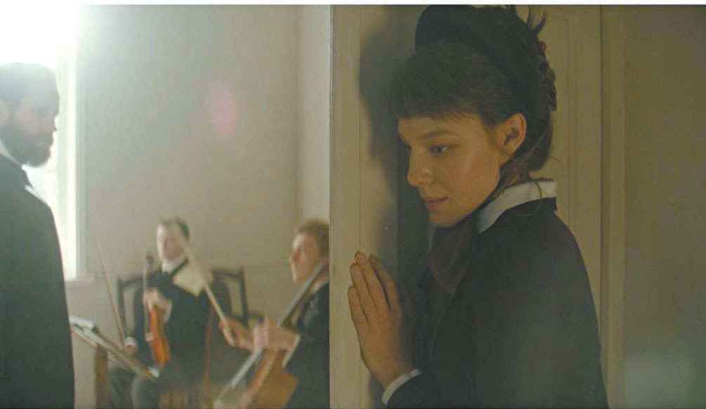原本以为此片配乐会大量选用“老柴”原作的精彩乐段,谁知导演偏偏反其道行之,将柴科夫斯基本人的作品减之又减,只有家中琴房、音乐厅等为数不多的几个场景,短暂地出现了老柴的作品片段。这显然是导演熟读作曲家生平及安东尼娜书信后的刻意为之。从史料中看,安东尼娜对于柴科夫斯基的那些伟大作品所知甚少,依她的天资,绝难与天才丈夫在音乐创作上擦碰出怎样热烈的火花。片中“老柴”音乐的缺席,亦象征了这场亲密关系中对话与陪伴的不复在场。所谓“此时无声胜有声”,以“无”摹写空空荡荡的爱情与婚姻,亦是再恰切不过。