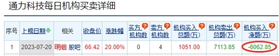 龙虎榜数据显示,通力科技卖出金额最大的前五名中,有4家机构专用席位。经统计,通力科技今日的机构席位净卖出金额为6062.85万元。
