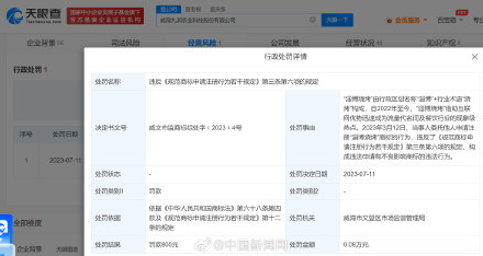 天眼查App显示,近日,威海九润农业科技股份有限公司因违反《规范商标申请注册行为若干规定》,被威海市文登区市场监督管理局罚款800元。处罚事由显示,“淄博烧烤”由行政区划名称“淄博”+行业术语“烧烤”构成,自2022年至今,“淄博烧烤”借助互联网优势迅速成为流量代名词及餐饮行业的现象级热点。2023年3月12日,当事人委托他人申请注册“淄博烧烤”商标的行为,构成违法申请有不良影响商标的违法行为。