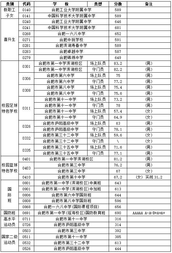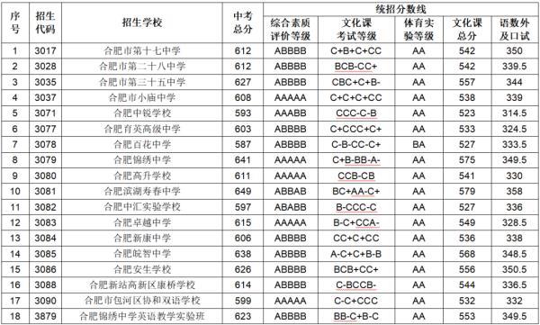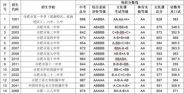 合肥一、六、八中三校联招线划定!