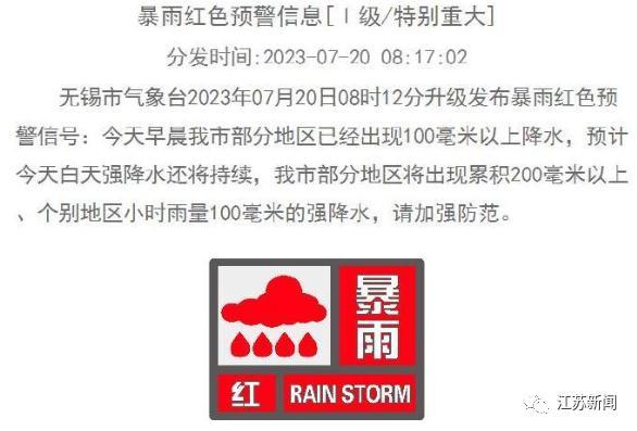 无锡还发布了暴雨红色预警