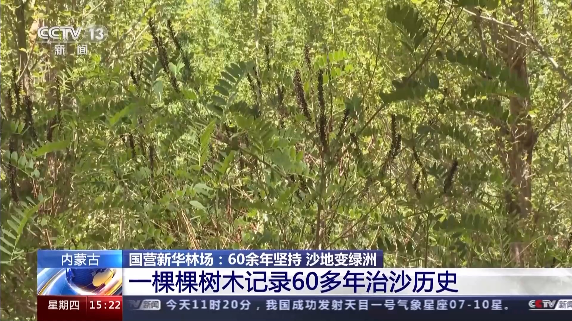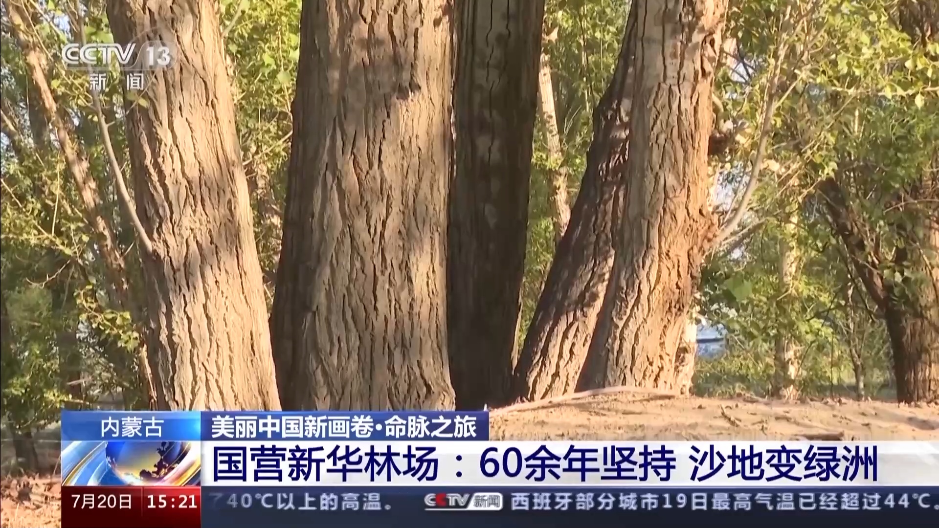 总台记者 阮超:我现在在国营新华林场,我身边的这棵树叫小美旱杨。顾名思义,它属于比较耐旱的一种杨树,这棵树也有50多岁了。