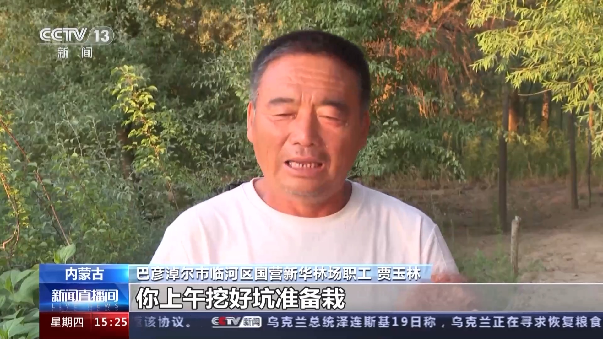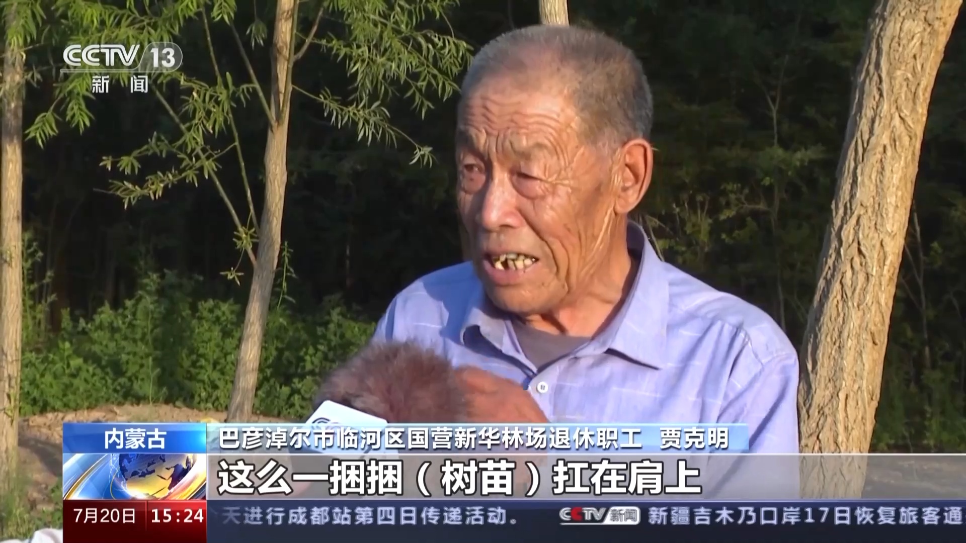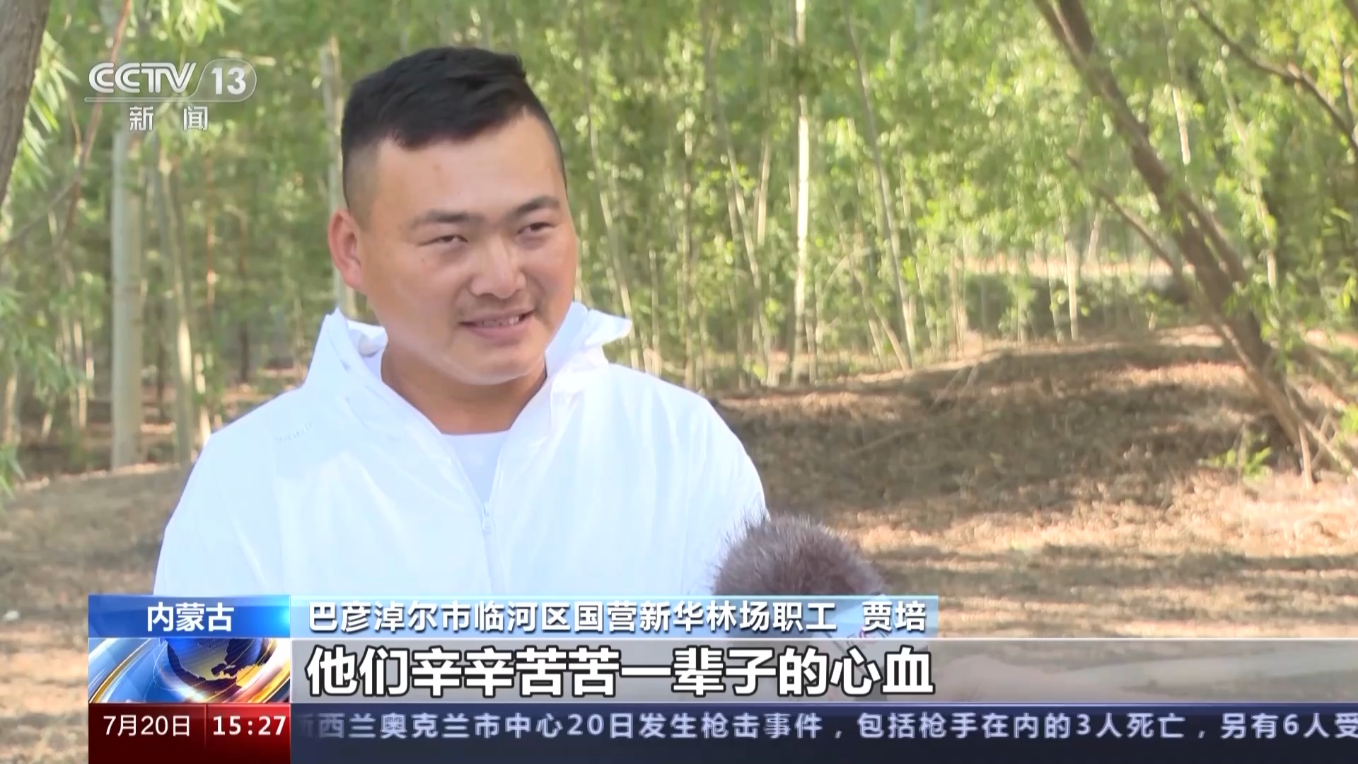 内蒙古巴彦淖尔市临河区国营新华林场职工 贾玉林:我和我父亲这两辈人负责栽,(到)他们手上管护,不让羊啃了,不让起火了,森林覆盖面积也增大了,我觉得也挺欣慰。